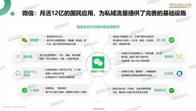 我们在此前发布的《微信生态下的营销洞察报告》中,曾经提到了微信生态内多样化的私域营销手段,比如朋友圈广告、微信视频号引流、微信群沉淀粉丝、微信公众号以内容实现营销目的等等。