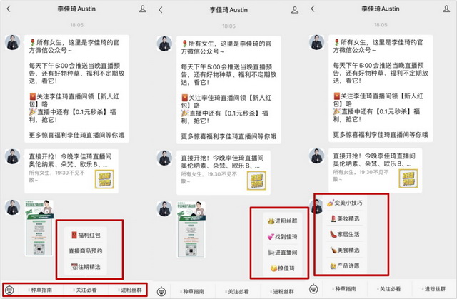 通过微信公众号的日常内容更新,粉丝们越来越了解李佳琦直播间,也能够根据自己的需求在直播间完成消费转化,同时也成功为微信社群完成了引流。