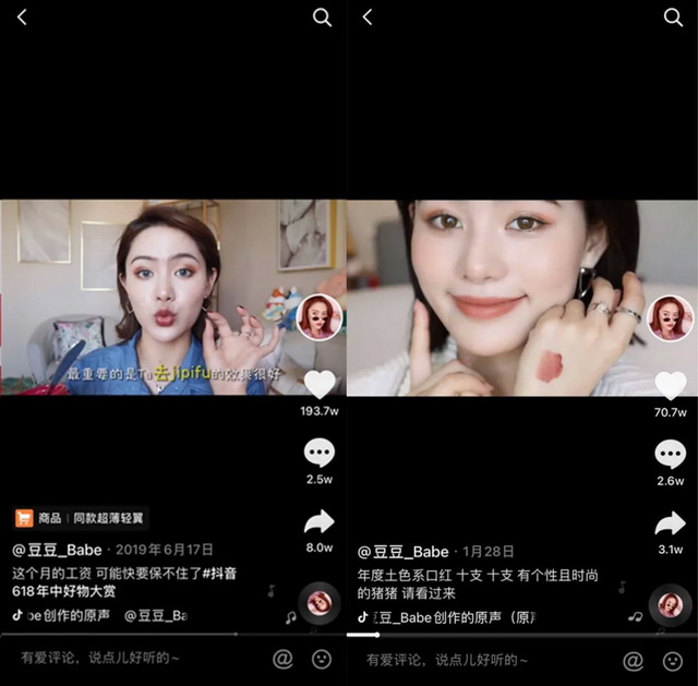 粉丝关心的妆容、护肤教学和各类产品测评组成了豆豆的核心内容,穿搭、Vlog等选题则是在契合粉丝需求的基础上自然延伸。2020年,豆豆还开始尝试做明星访谈,在粉丝中收获了不错的声量。