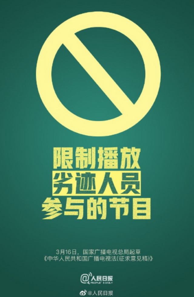 播出平台、制作方、艺人三方惩戒,劣迹人员参与的节目限制播出