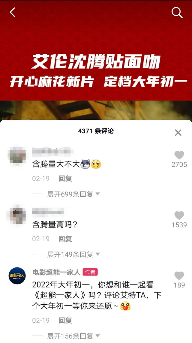 经历过宣发误导的观众,更相信社交媒体上的口碑反馈,精准地获知“含腾量”数值后,才能放心走进电影院。从某种程度上来看,对“含腾量”的测量,也是电影口碑效应的另一个维度。