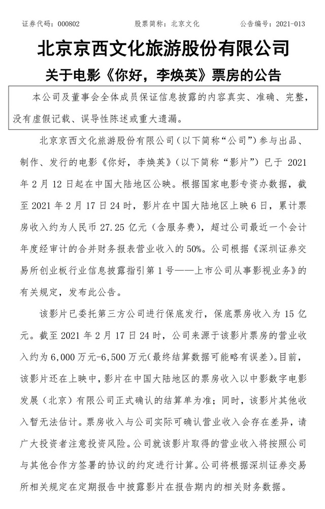 由此可见,贾玲和北京文化都不是最大的赢家。