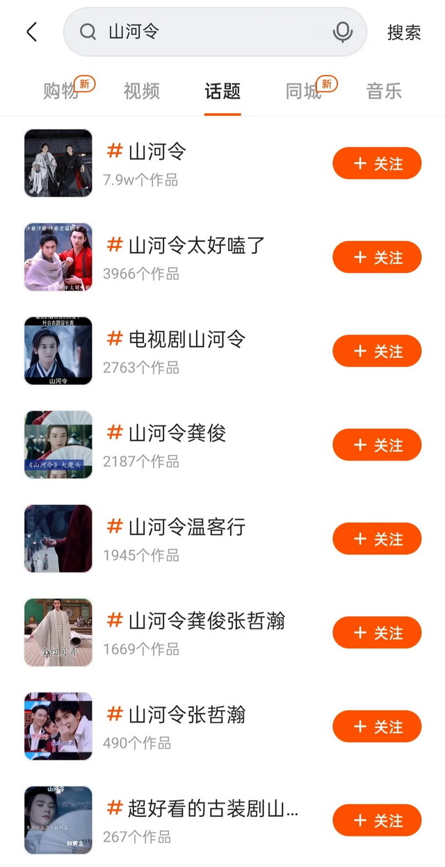 在抖音搜索《司藤》《山河令》等热播剧,其话题合集播放量都超过数十亿,话题#我在抖音看综艺#总播放量更是高达363.4亿。