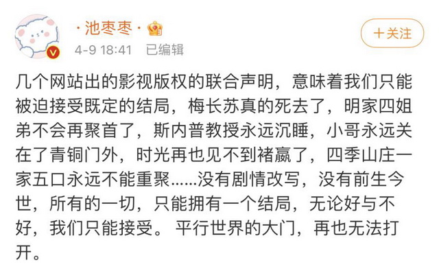 “梅长苏真的死去了,明家四姐弟不会再聚首了,斯内普教授永远沉睡……”
