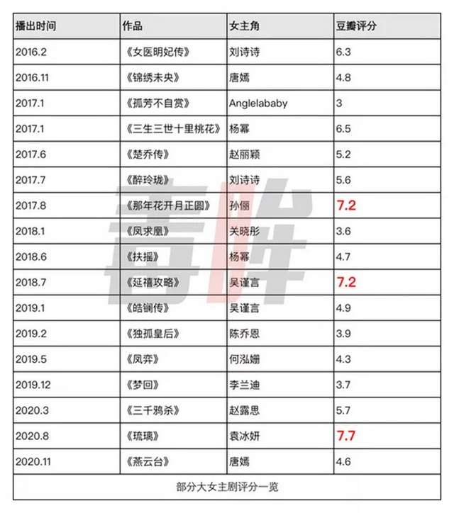 但是,毒眸往期文章《国产剧女主为什么越来越“丑”?》中也提到,近年来走红的国产剧女主大多属于娇憨的邻家美人。从外形条件来看,市场会更为偏爱美艳成熟的85花们。