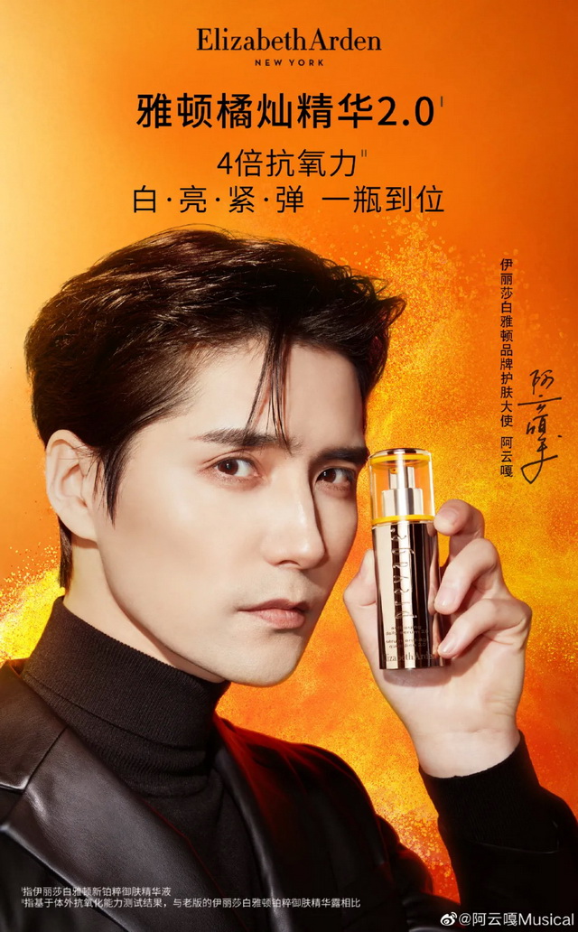 4月21日,阿云嘎成为伊丽莎白雅顿护肤大使。
