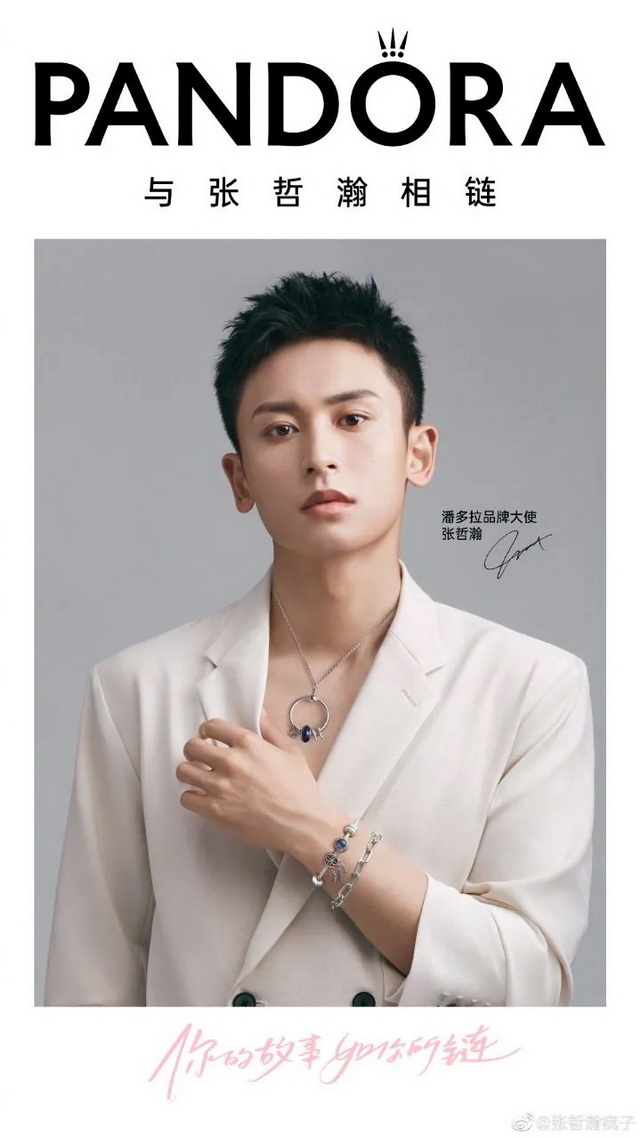 4月21日,张哲瀚成为潘多拉珠宝品牌大使。