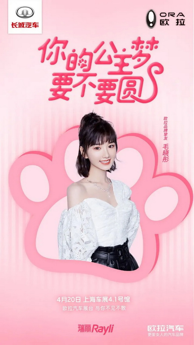 4月17日,毛晓彤成为欧拉品牌挚友。