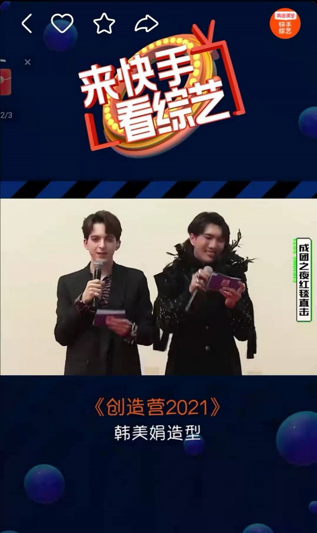 当一批快手系艺人在综艺亮相,如Giao哥参加《中国新说唱》,韩佩泉参加《创造营2021》之后,快手也可以更深度地进入产业链上游的造星过程中。如今,优爱腾三家长视频平台都有布局了明星经纪,未来短视频平台亦有可能加入战局。