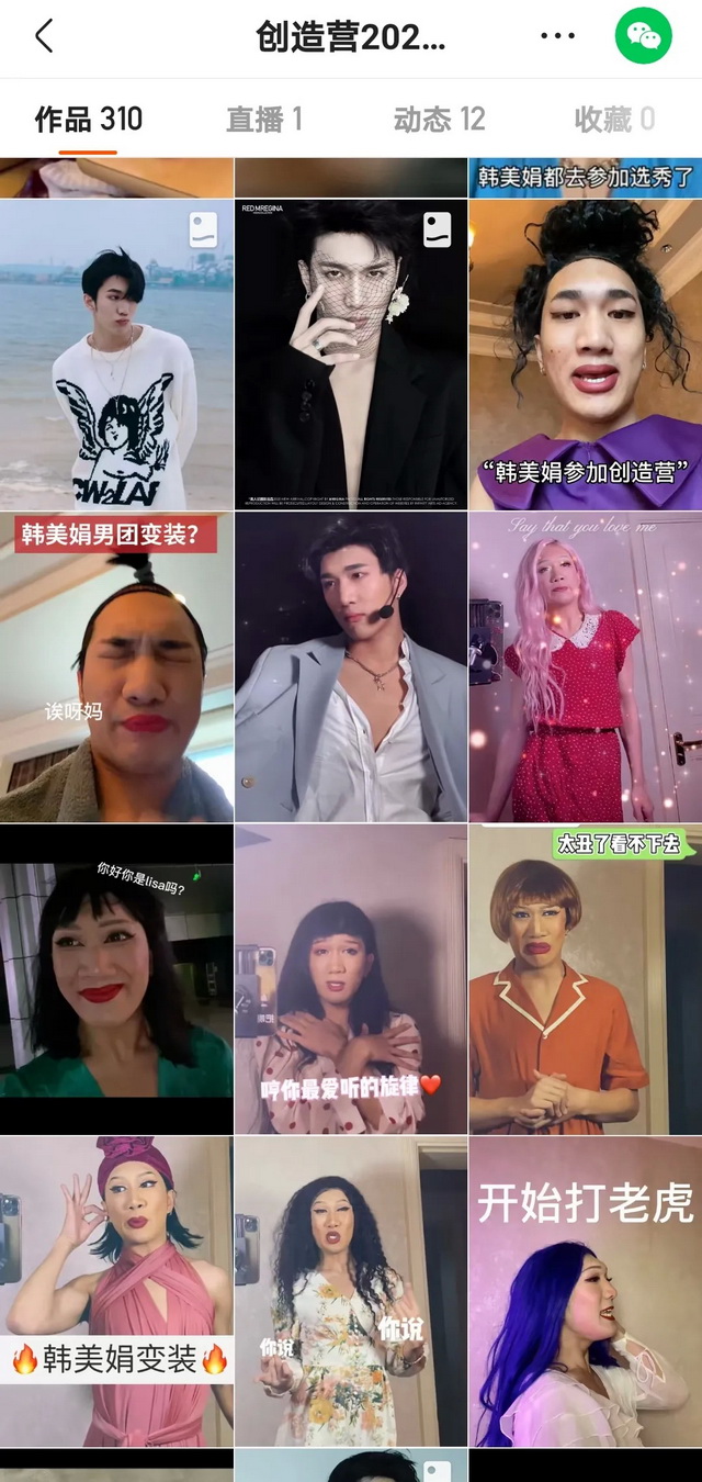 2018年4月,一位名为“韩佩泉Aimer”的快手音乐人出现,有辨识度的嗓音为他的翻唱加分不少,后来欧美夸张妆容更是让其以“韩美娟”的形象一路走红,涨到了1000万粉丝。