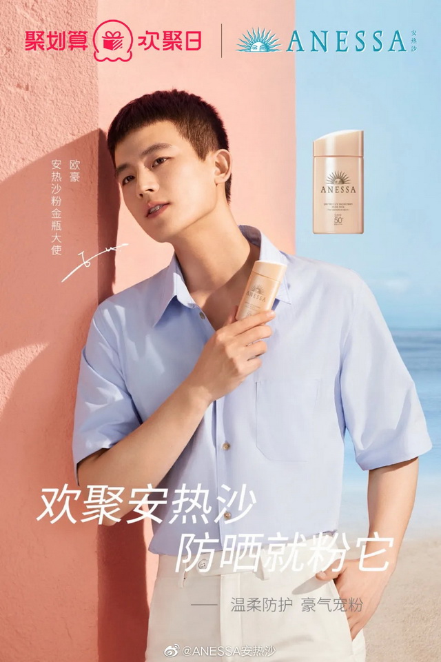 5月7日,欧豪成为安热沙粉金瓶大使。