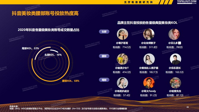 抖音:美妆类KOL投放热度飙升,腰部账号投放热度高