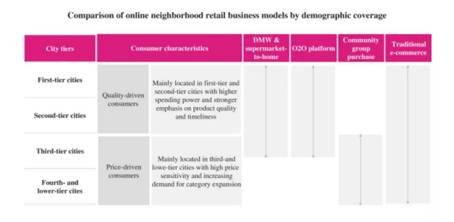 几种生鲜电商模式在不同城市层级中的“吃香程度”