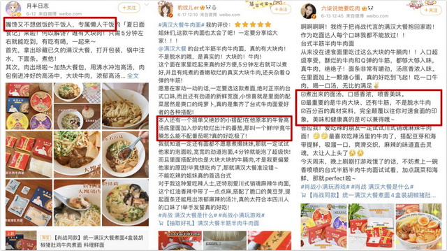 因此,在这一阶段,微博以其丰富的KOL、KOC矩阵资源以及多元的内容垂类,从差异化角度与内容,为满汉大餐全方位种草,加强了消费者对于这款产品的卖点认知。