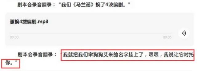 按照张慧敏的说法,刘燕燕在跟其沟通的过程中透露《马兰谣》换了四波编剧,而《马兰谣》正式署名的编剧有两个,一个是刘婧,一个是艾米。其中“艾米”,就是刘燕燕的爱犬。