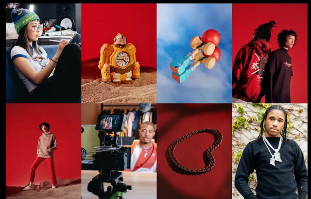 和传统电商网站用图片吸引用户、以双瀑布流形态展示商品的方式不同,奈飞显然想赋予商品更多故事性。在网站的栏目导航中,设计师和品牌名字被直接当成板块名字罗列,消费者点击不同板块后,跳转的页面会有一段3-5分钟的视频。设计师会在视频中出镜展示作品的设计过程、手稿图案以及个人理解,视频下方才是具体的商品图片——这更像是艺术品的展示方式:故事和风格远比产品本身更为重要。