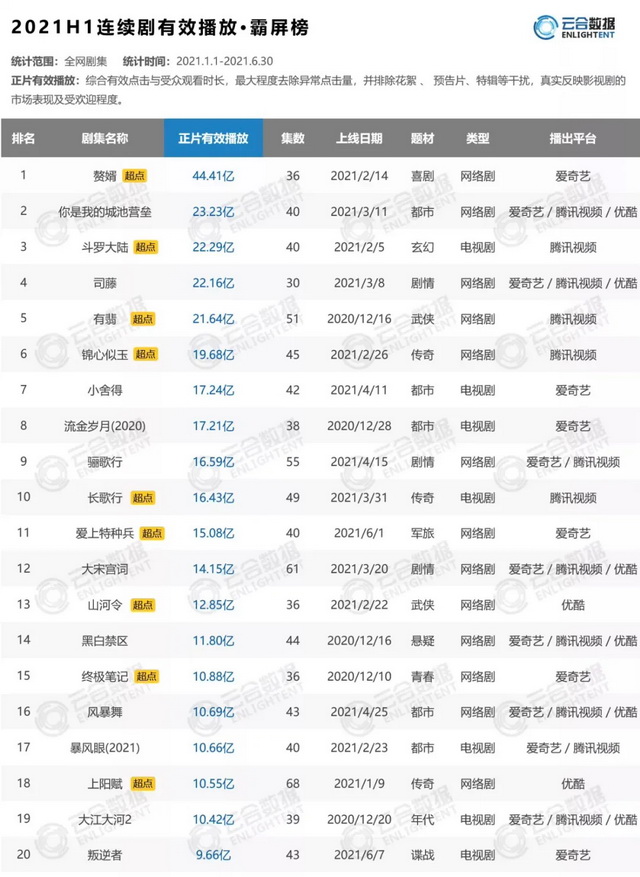 毒眸的2020年剧集盘点里曾提到,去年全网连续剧有效播放量已经同比下滑了18%。而时隔半年后,该趋势仍在继续。对长视频平台而言,今年上半年似乎仍然不太好过。