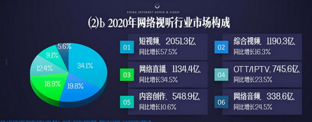 根据《2021年中国网络视听发展研究报告》,2020年短视频短视频网民使用率目前已经接近90%,占据的市场规模同比增长了57.5%,体量比综合视频多了一倍多。
