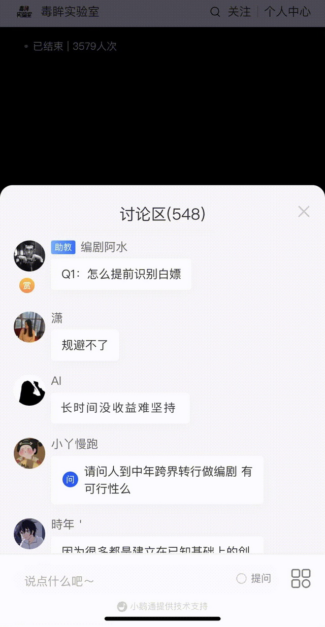 这是毒眸组建的编剧社群,两周内的第二次“大咖”直播。
