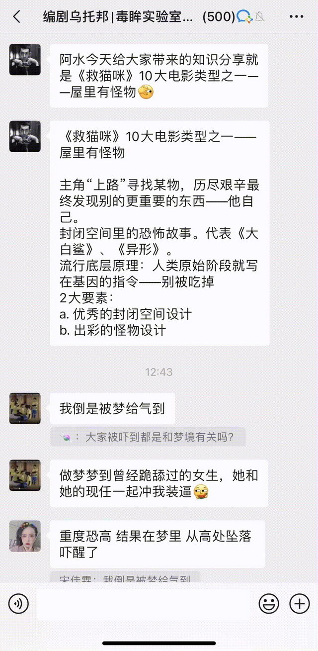 你还想听哪些跟编剧有关的分享?加入编剧社群后并在群里提议,我们都会努力去邀请的。欢迎加入这个话多但不水,人多活动更多的大集体。