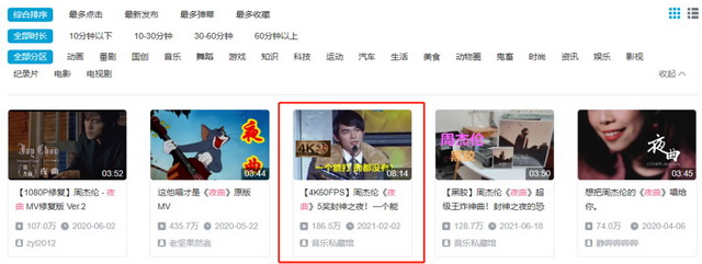 如今在B站搜索“夜曲”,获奖之夜视频的默认排序还在前列