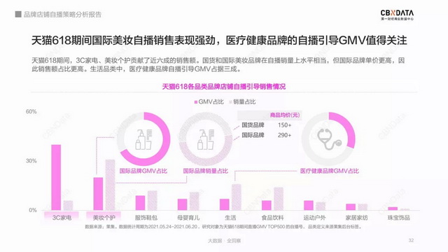 CBNData《报告》还发现,今年淘宝直播的医疗健康品牌也在发力自播。在生活品类中,医疗健康品牌店铺自播引导GMV占到三成。天猫健康总经理陈浩曾介绍,“2021年,天猫618健康专场的商家数量同比翻了一倍”。从养生保健品、美瞳、医用敷料到HPV疫苗、智能养生仪等,都是当下年轻人追捧的医疗健康消费新潮流。可以预见,医疗健康在未来还有更大的上升潜力。