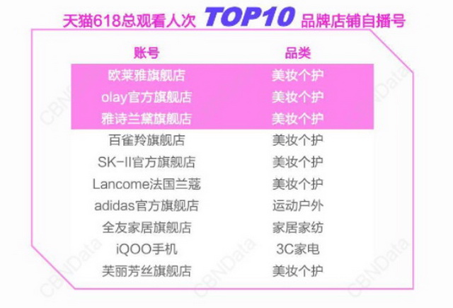 CBNData研究发现,国际和国货美妆品牌在本次618期间的运营侧重点各有不同。国际品牌自播总观看人次更高;天猫618总观看人次TOP 10账号中,前3都是国际美妆品牌。国货品牌则在粉丝增长上更具潜力。