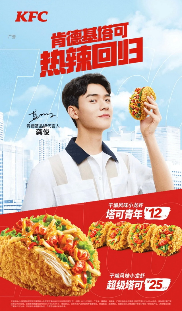 7月30日,龚俊成为肯德基品牌代言人。
