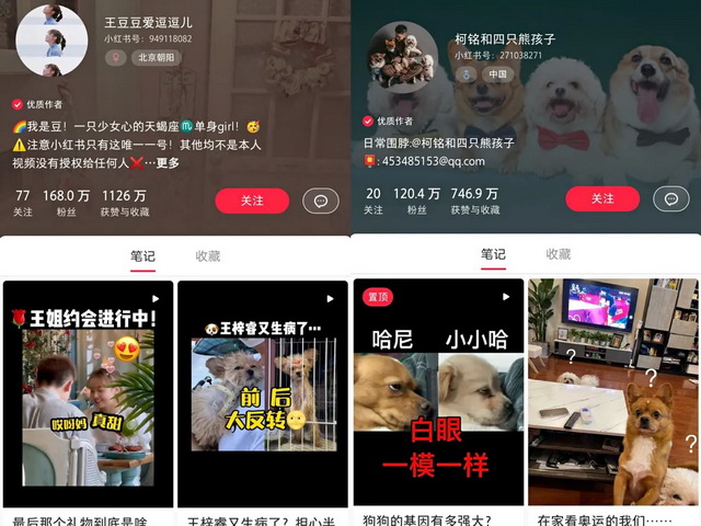 同时克劳锐也观察到,除明星之外,其他平台上的头部账号也开始在小红书发布自己的内容。比如抖音、快手上粉丝均超千万的幽默搞笑博主@王豆豆爱逗逗儿、萌宠领域红人@柯铭和四只熊孩子,也都靠着一系列有趣的内容收获了众多网友的欢迎。