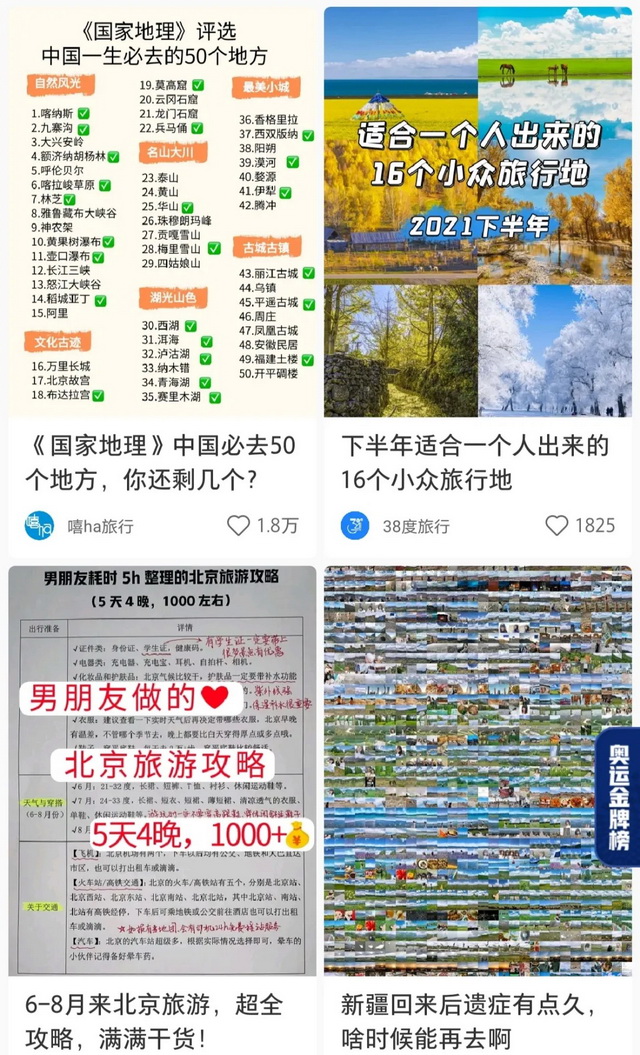 最明显的变化就是内容垂类的多元化。在过去的一两年中,小红书美妆类的内容比例下降,旅行、美食等泛生活领域内容生长迅速,对于热爱旅行的用户来说,小红书正在成为经常使用的旅游出行决策平台。