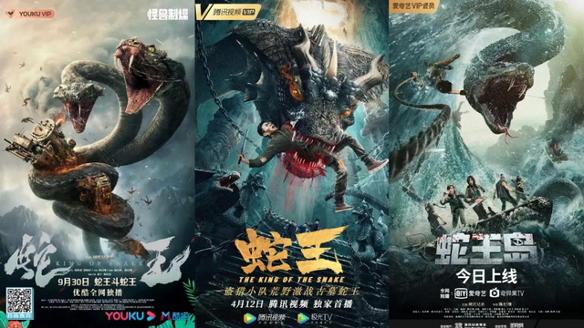 网络电影自身产出过的爆款,也是借鉴对象。2020年《蛇王》的票房超过了2000万,今年就有《蛇王2021》和《蛇王岛》两部影片上映,事实上后者才是同一家公司原班人马制作的续集,片名更像续集的《蛇王2021》并非同系列产品。