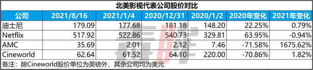虽然去年AMC和Cineworld的股价均暴跌70%以上,但两者均在年内走出阳线行情,优于同期迪士尼和Netflix的表现。在业绩为王的资本市场中,投资者对于两类公司的喜好也呈现出新的变化。
