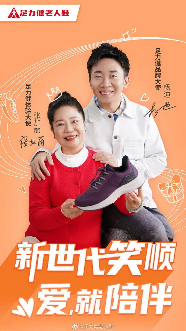 8月18日,杨迪成为足力健品牌大使,杨迪妈妈张加丽成为足力健体验大使。