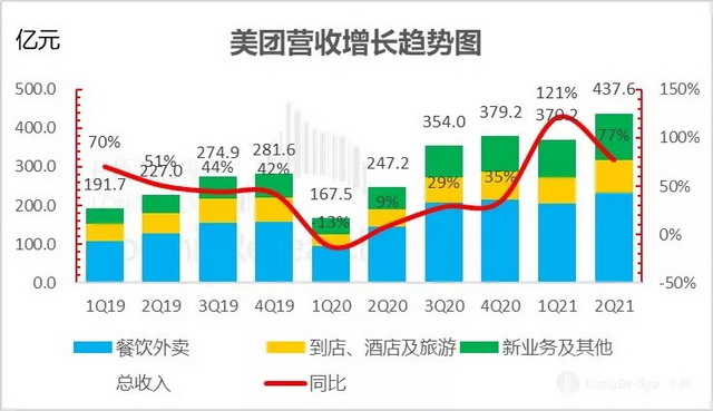 餐饮外卖和到店酒旅业务分别盈利24.4亿元和36.6亿元,同比增长95.2%和93.7%。往回看,去年疫情与居家隔离,让外卖和酒店业务受到了重创,此后,增速触底反弹。