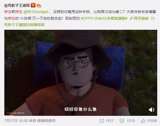 2020年11月,OPPO邀请脱口秀演员王建国担当新品宣传官,拍摄了一则视频。视频中王建国通过“千年亚军”的梗引出品牌新品发布会的信息,引发了外界的关注与期待;今年8月,OPPO再次联手王建国、胡兰拍摄了一支搞笑黏土动画短片,利用了俩人的声音特色,突出脱口秀演员的嘴上功夫,展现多个场景下产品的功能。