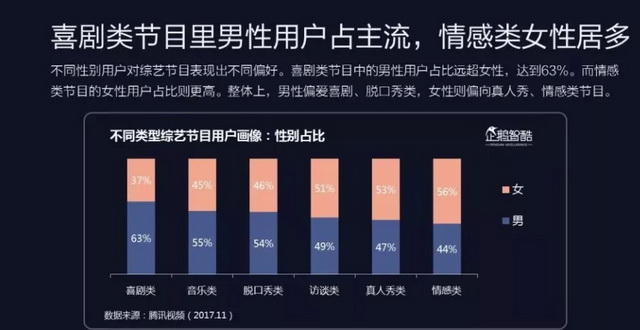 这或许与此类节目的受众性别有关,根据企鹅智酷发布的《2018中国在线综艺用户洞察报告》,虽然综艺节目整体男女观众各占半壁江山,但喜剧类成为男性观众比例最高的类型。对美妆品牌而言,喜剧综艺着实不是触达目标用户的优质选项。