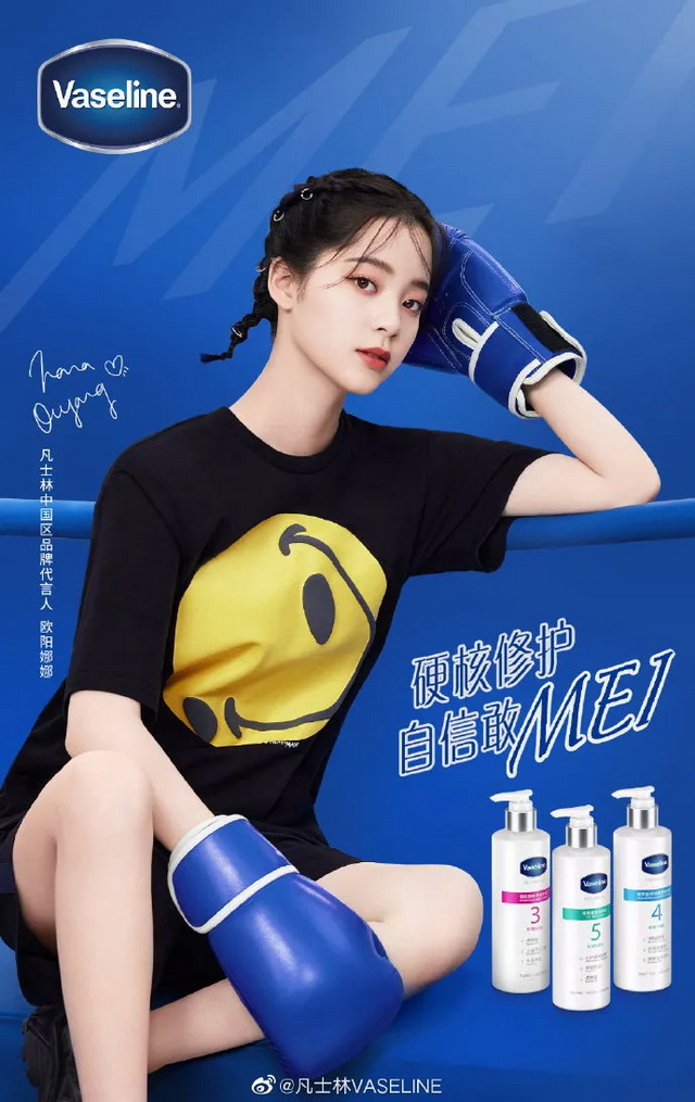 9月3日,欧阳娜娜成为凡士林中国区品牌代言人。