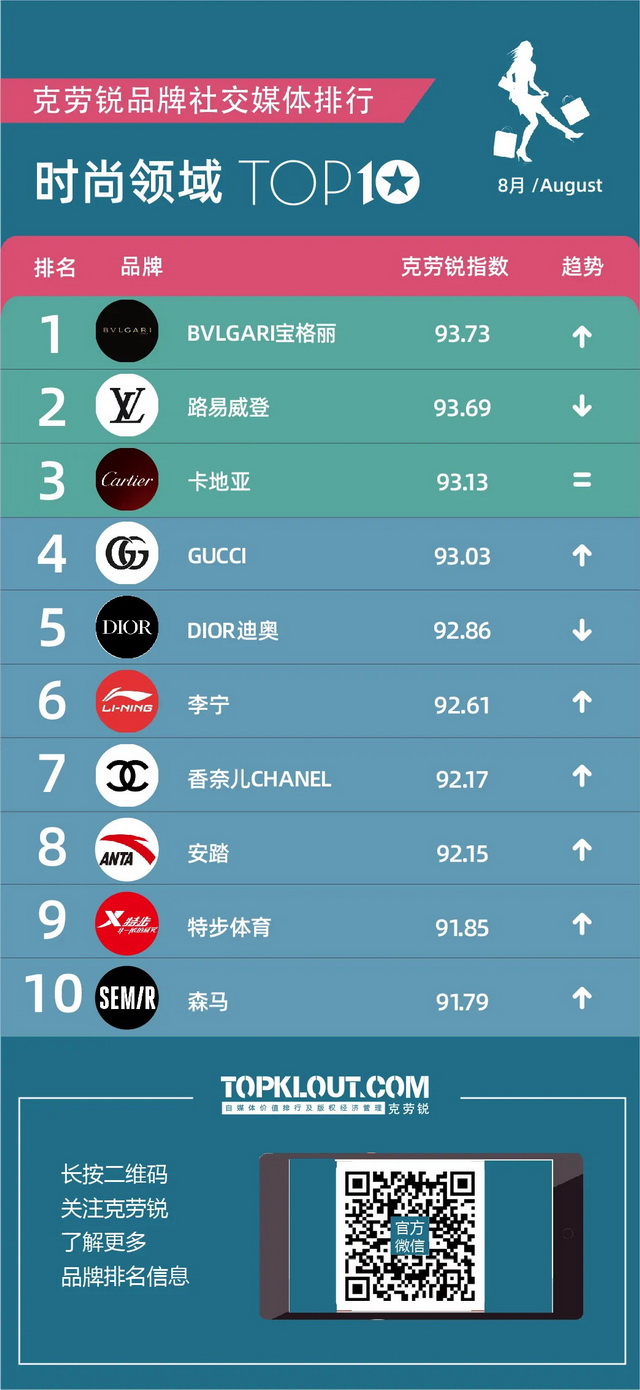 克劳锐独家发布《品牌社交媒体排行榜》,更多垂类、更细划分,全方位、多维度综合评定品牌影响力。快一起来看看吧~