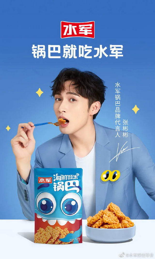 9月6日,张彬彬成为水军锅巴品牌代言人。