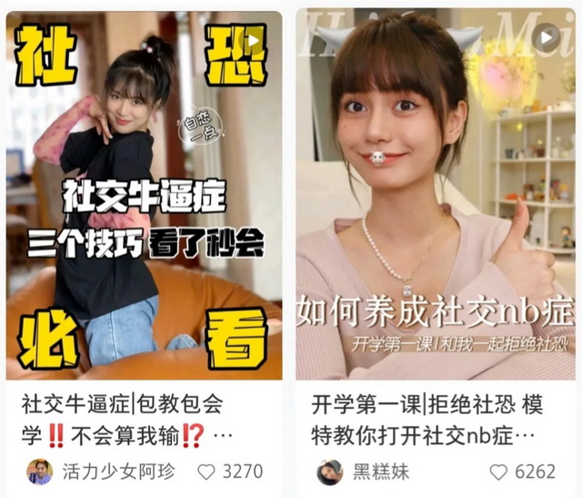 而“社交NB症”的现象级走红,则可以看成是社恐患者的另类表达。其内容的特殊性让抵触社交的群体在社交压力下取得了片刻的放松,并且传递出一种积极的态度——自信、敢于表达。大家爱看这样的视频,正反映出自己渴望社交,希望释放压力的心理。
