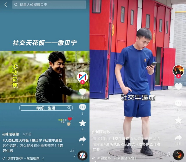 当然最火的还属抖音,短视频形式更让一众人沉浸式体验了“社交NB症”的瞬间。大庭广众之下拍视频、随时随地都能和陌生人攀谈起来、在饭店吃饭抢着干活让服务员无活可干……