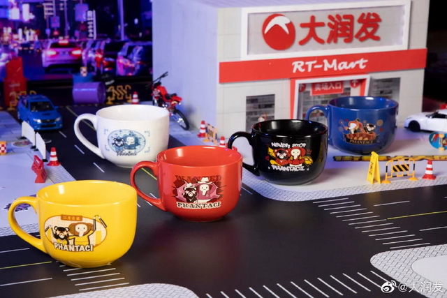 在品牌形象更加立体化的同时,大润发还携发哥涉足了IP联名的领域。今年7月份,大润发与知名动画IP三丽鸥家族、周杰伦自创潮牌PHANTACI上线联名限量款陶瓷杯,并在微博发起#街舞大天团#话题,与“杀鱼T恤”活动方式相似,线上宣传抽奖转发,线下门店购物指定消费即可获得该奖品。该活动也收获了不错的曝光效果,宣传短片播放量达到257万。