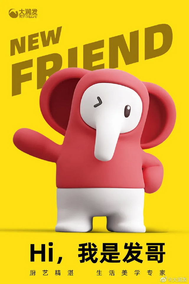 2020年年底,大润发首次公开了自己的动画IP形象暨首位代言人“发哥”,这也是其他传统商超目前还未曾做过的尝试。大润发IP形象的建立注入了“阿里”基因,在官宣文案中,大润发明确表明“发哥是阿里巴巴动物园的新成员”。