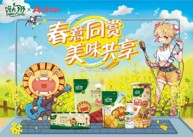 为了保持子品牌的活跃度,永辉自然也做了一番功课。以零食品牌馋大师为例,它选取视频网站 AcFun(A站)进行深度合作,从去年开始就多次与A站举办线下路演互动活动,还出品相关联名礼包,这种新模式也为双方品牌都带来了一定的流量曝光。