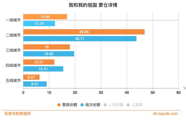 拓普电影智库数据显示,1-6日《长津湖》在一二线城市的票房占比要低于曾经的国庆档冠军《我和我的祖国》,但前者三四五线的票房占比高于后者,也就是说,《长津湖》在一定程度上调动了下沉市场的观众。