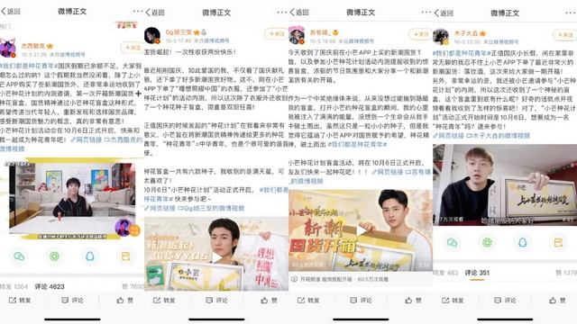 从10月3日到5日,官微连续3天以“小芒种花大联盟”为主题,联动27家品牌发布海报,同时以邀请微博和小红书达人内测的形式,开箱赠送“种花礼盒”,为种花夜的最终绽放种下了新潮种子。