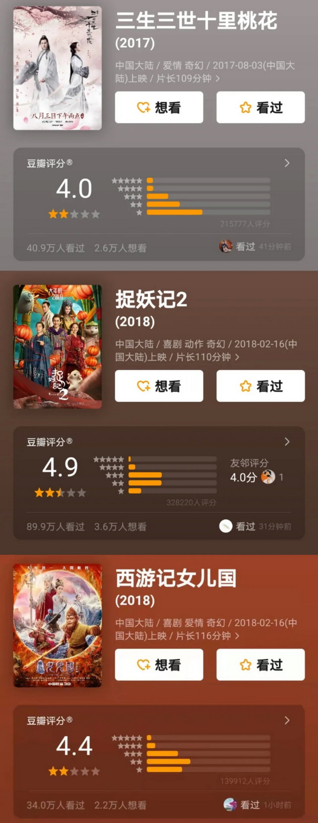 尽管票房和口碑双失,但仍然挡不住热情的投资者们。之后几年里相继出现了《三生三世十里桃花》《捉妖记2》《西游记·女儿国》等一系列打着“东方奇幻”标签的电影,它们的共同特点是,豆瓣评分都没超过5分。