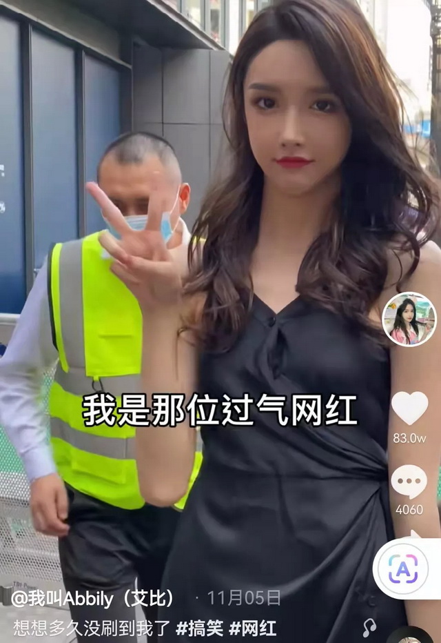 但即使没有任何黑料,过气的颜值网红也不在少数。曾经凭借热舞爆火,粉丝量有1300万的“艾比”,如今平均视频点赞量仅有2.3万,在最近的视频里,他也常常自称过气网红。