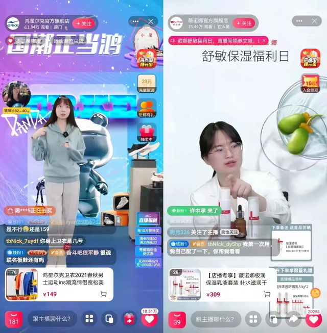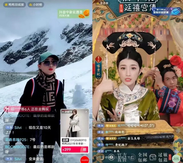 前有品牌“YAYA鸭鸭登山服饰旗舰店”主播们穿着自家羽绒服,在海拔几千米的西藏雪山,在零下十度的缺氧环境里,向用户直观展示羽绒服的抗寒能力。后有“佰草集延禧宫正传”复刻电视剧场景和桥段,将直播间变成一个“肥皂剧”版的飙戏现场。