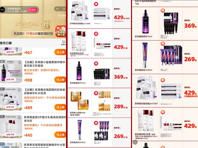 在价格方面,平常(除11月1日-3日)欧莱雅直播间里安瓶面膜为489元48片,主播直播间里则是429元50片,相对来说缺乏优势。但是主播直播间里的活动并不是每天都有,而品牌可以通过连续的优惠活动持续吸引消费者,常态化的促销成为品牌直播间的优势之一。